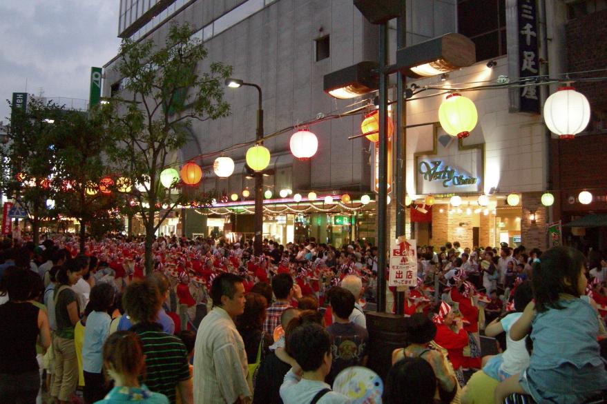 山車にはミス花笠や古谷香織、夏川純などが乗っていた。