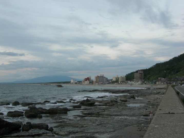 本来なら、温泉街の左側に鳥海山がくっきり見えるはずなんだけどな。