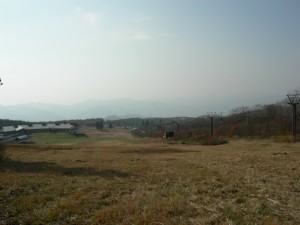 スキー場を横切るように道を歩いて山のほうへ向かった。