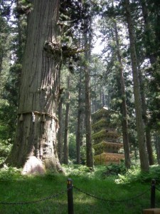 まずは千年杉と五重塔へ。