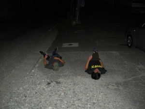 とりあえず再びUターンして、寝ている3人の横に車を停車させて窓を開けて声をかける作戦で行くことになった。