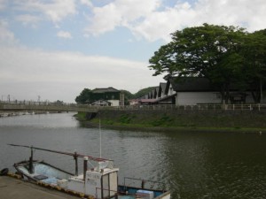 山居倉庫の駐車場はいっぱいだったので、川の対岸の駐車場に車を止めて倉庫周辺を歩いた。