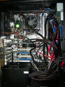 最初はSSD1台にHDD3台積んでいたのだが配線がゴチャゴチャになるのと、消費電力削減のため、HDDは1台のみに変更した。